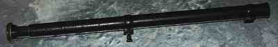 No clues at all. Well, it is obviously a rifle telescope sight. It fits to dovetail ramps, not a grooved rail, but that's about the sum of it, if you ignore dimensions. I'm hoping someone may know its make, nationality, or even just its approximate age. While I might make an intelligent guess at its age, I'd rather know.